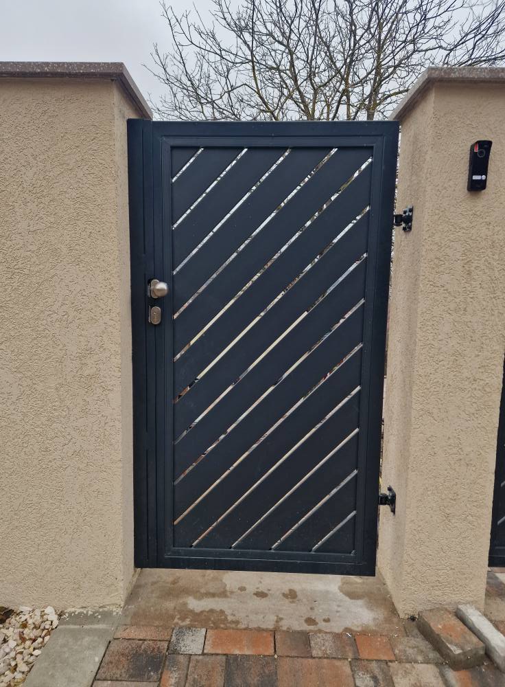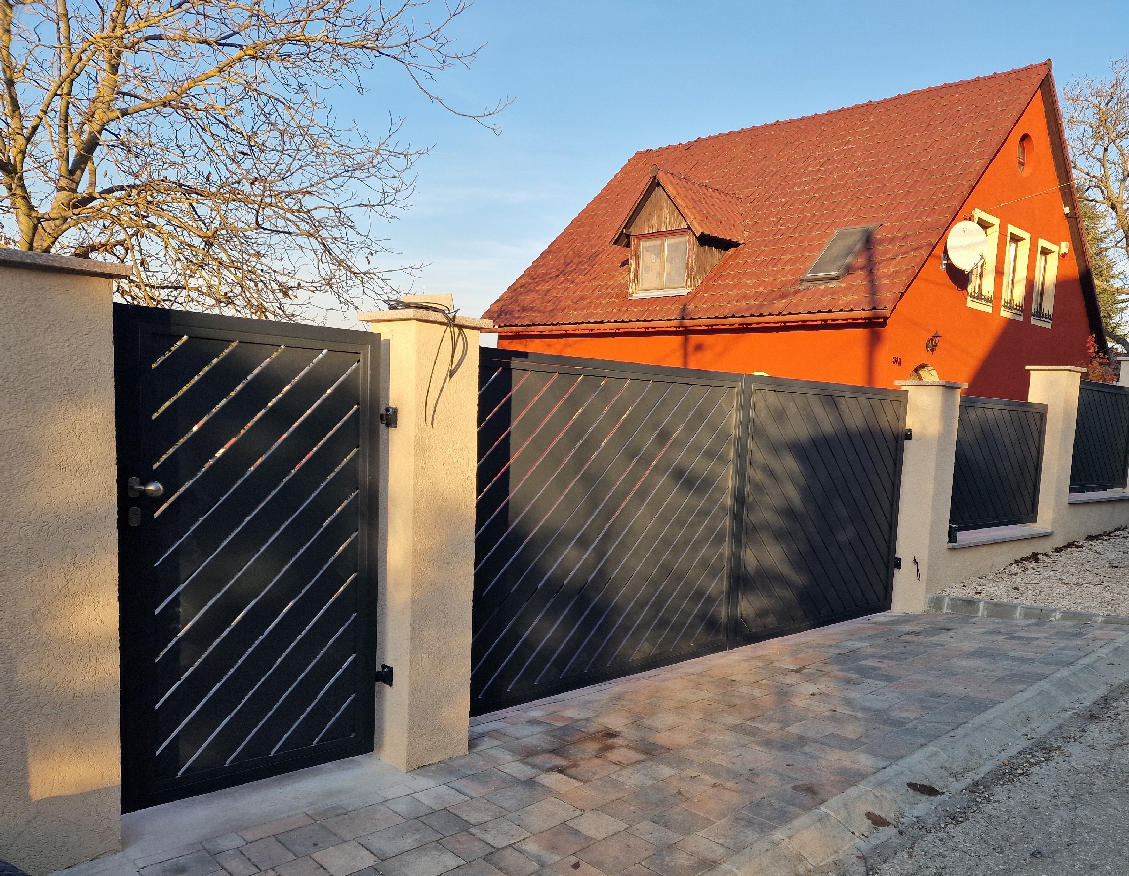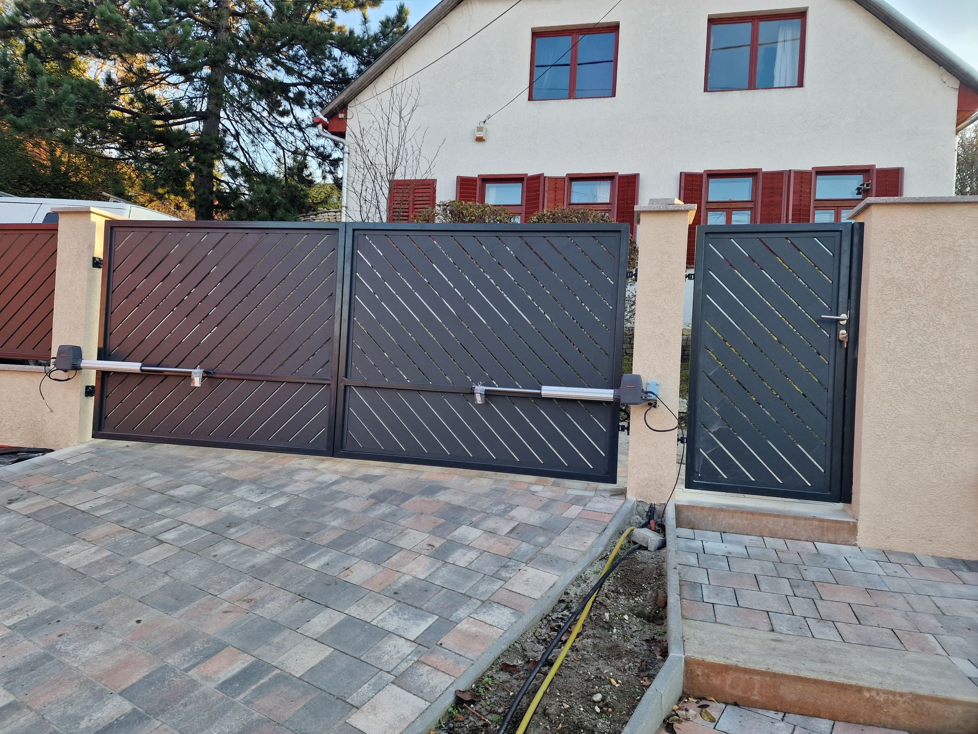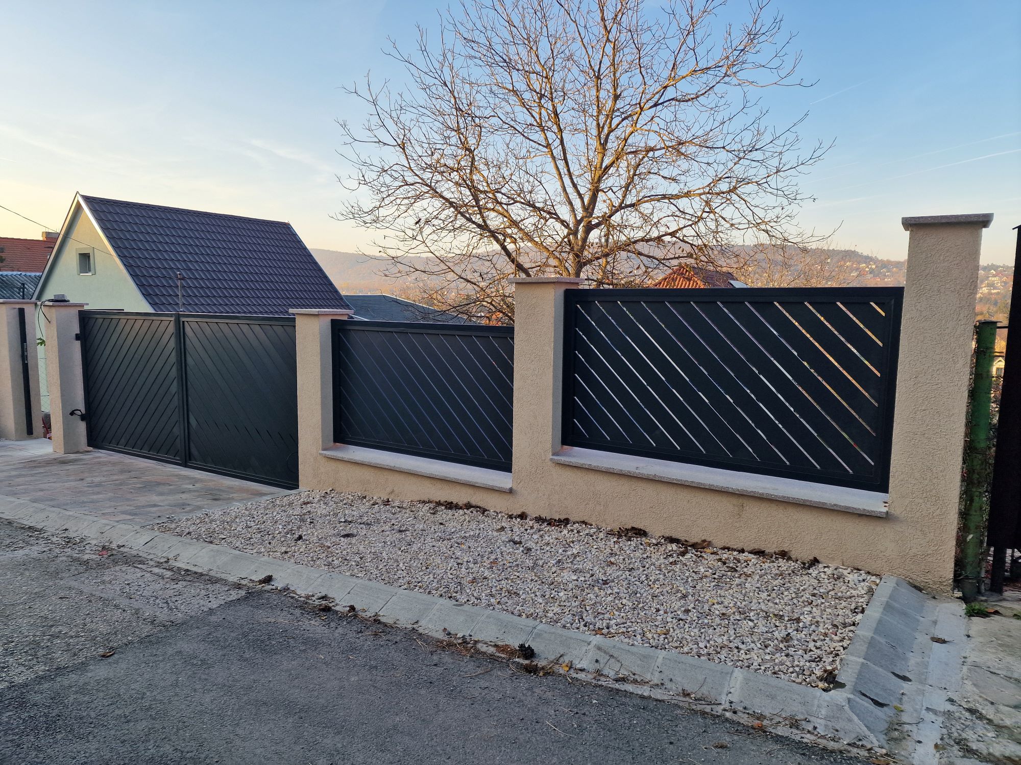 Standard alumínium kerítés és két szárnyú automatikus kapu – antracit